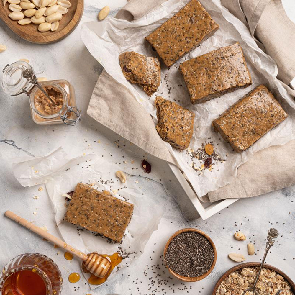 Peanut Butter, Honey, Rolled Oats, Coconut Oil, Chia Seeds, Raisins, Cranberry